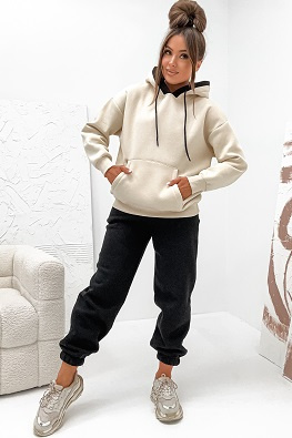Ocieplany dres damski bluza z kapturem + szerokie spodnie 503 - czarny
