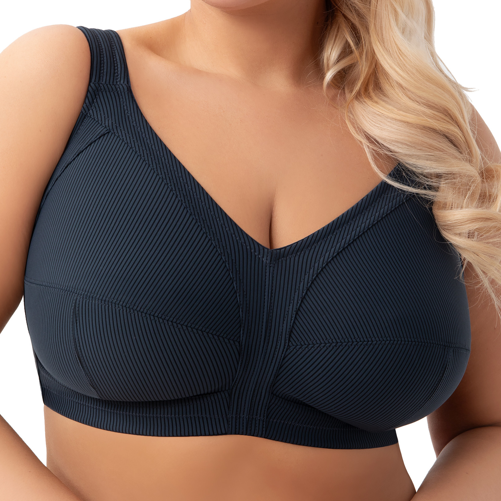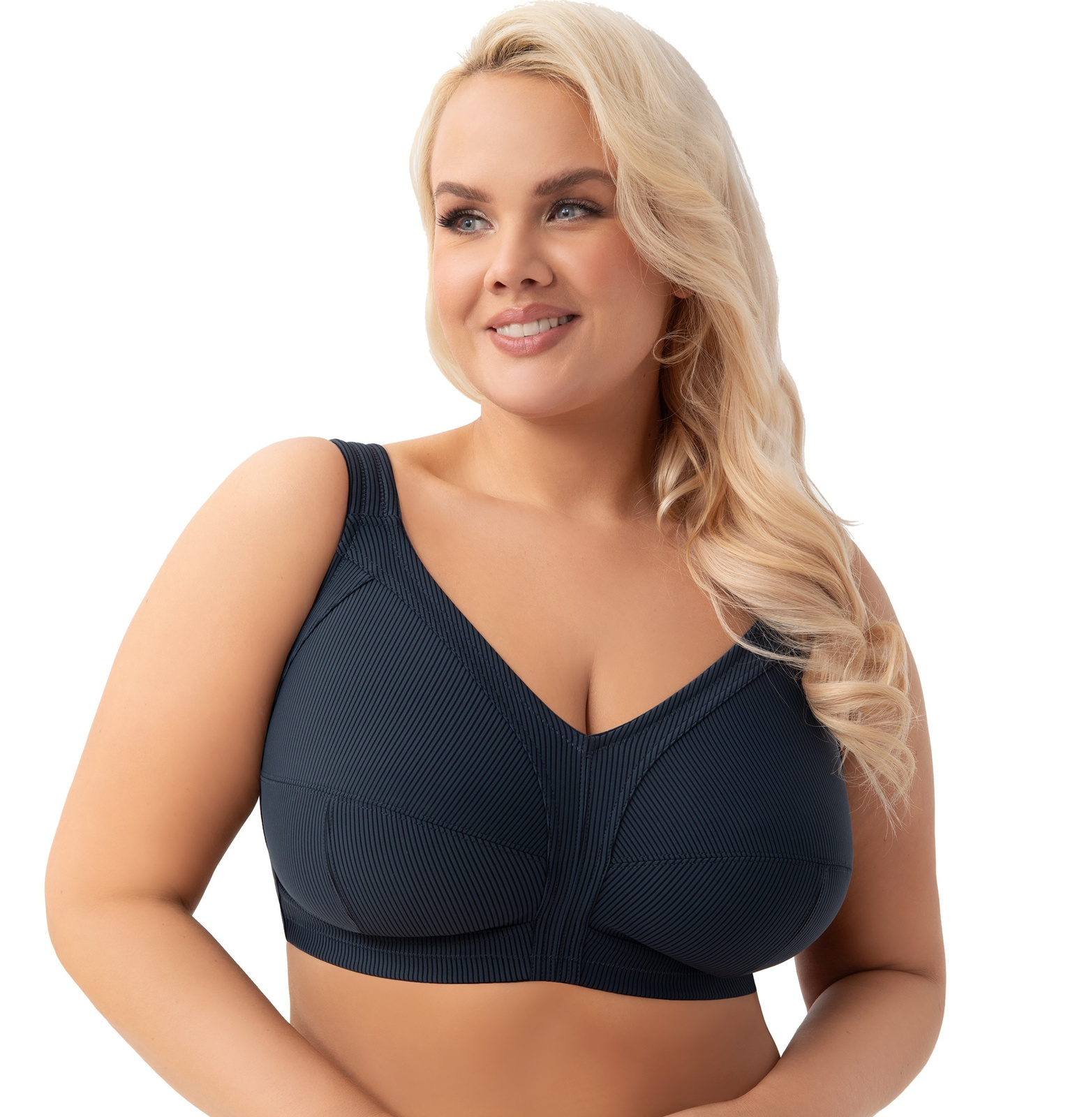 Szerokie, miękkie ramiączka skutecznie odciążają ramiona, a dopasowany pas obwodu gwarantuje pewność ruchów i poczucie bezpieczeństwa. To biustonosz, który łączy komfort użytkowania z nowoczesnym podejściem do kobiecej sylwetki.