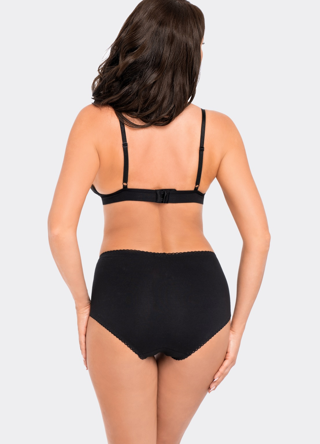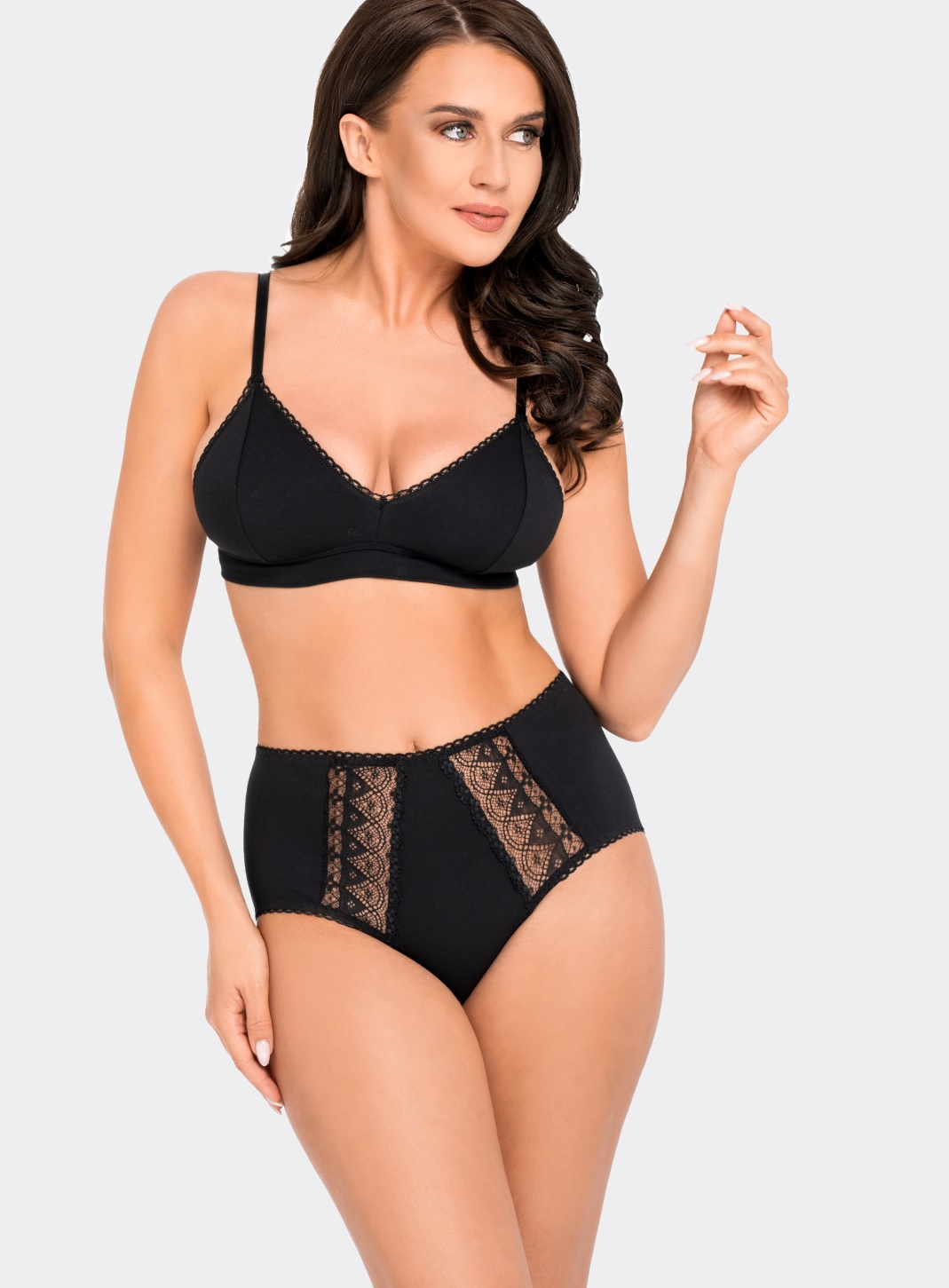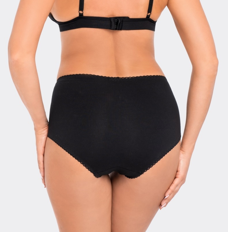 Figi damskie z wysokim stanem wykonane z najwyższej jakości bawełny, zaprojektowane tak, aby zapewnić zarówno wygodę, jak i elegancję. Przód majtek ozdobiony dwiema delikatnymi liniami koronki, które dodają kobiecego uroku. Cienkie koronkowe detale poprawiają ogólną estetykę, tworząc wyjątkową równowagę pomiędzy prostotą i wyrafinowaniem. tył zabudowany, gładki.