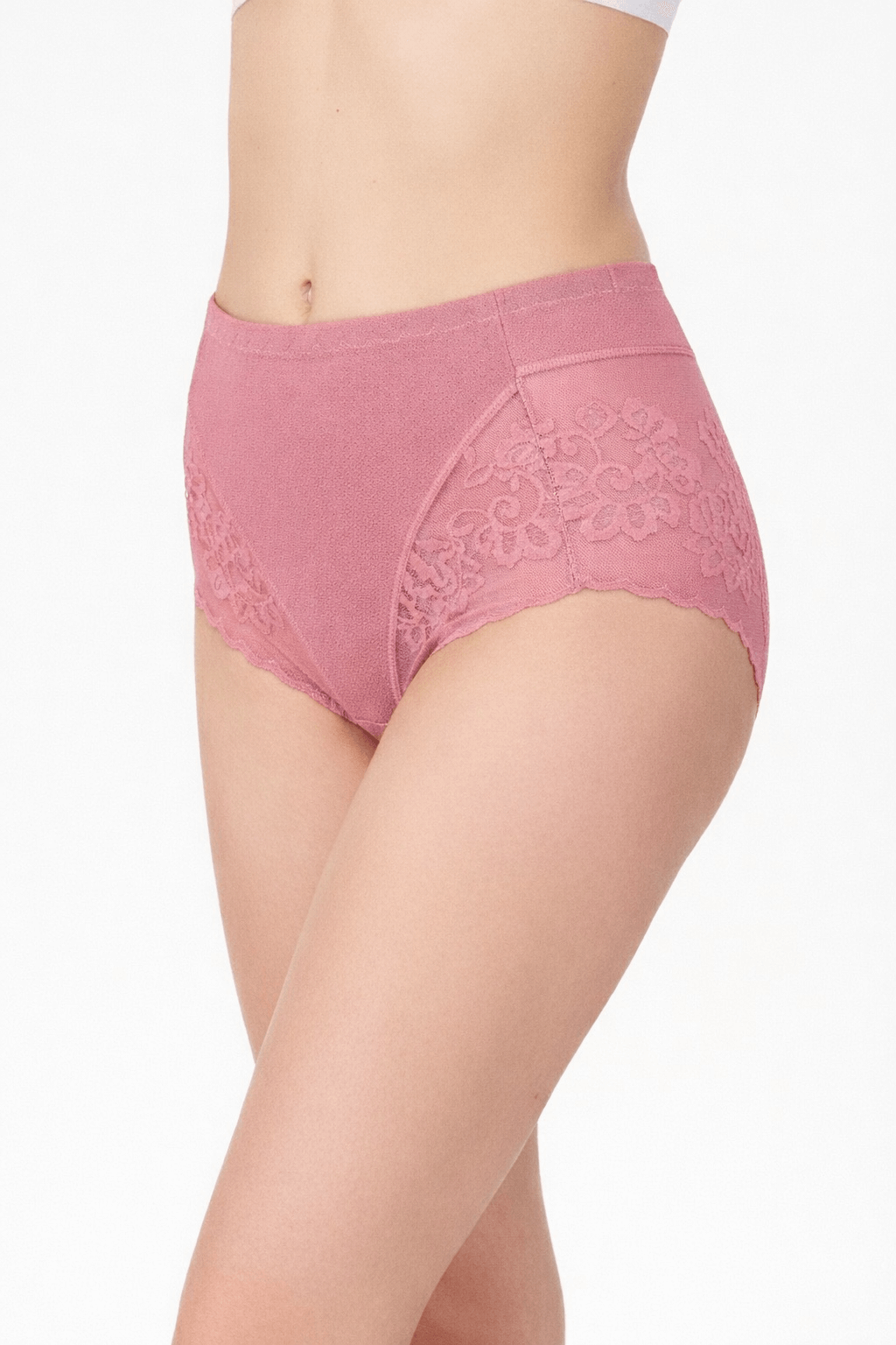 Figi damskie z wysokim stanem z mikrofibry – kolor brudny róż