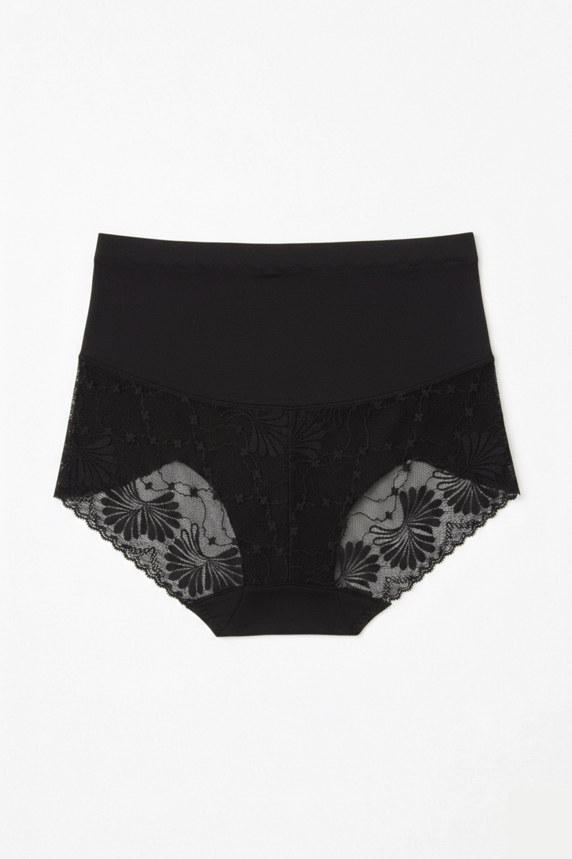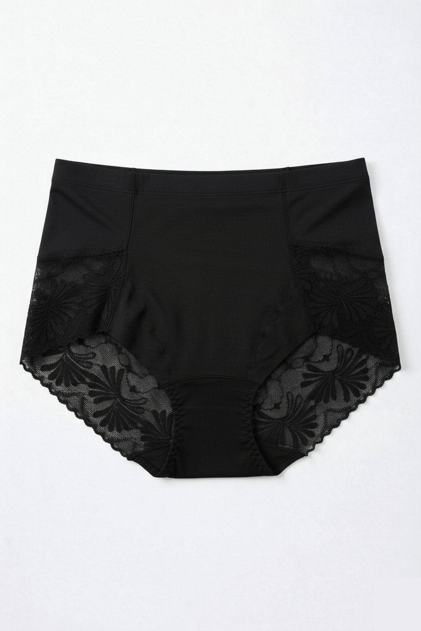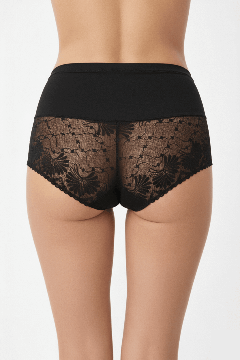 Czarne figi damskie z wysokim stanem zostały ozdobione delikatnym haftem, który dodaje bieliźnie elegancji i kobiecego uroku. Subtelny detal pięknie komponuje się z klasyczną czernią, podkreślając estetykę modelu bez utraty jego funkcjonalnego charakteru.