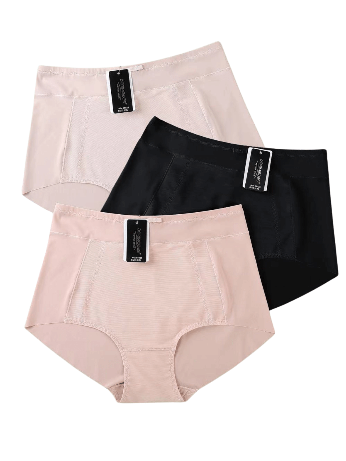 Wysokie majtki damskie modelujące talię. Tył zakończony bezszwowo. Szew na środku w tylnej części majtek zapewnia uniesienie pośladków. Idealne pod przylegającą odzież. Pionowe, ozdobne wstawki z tiulu w przedniej części majtek.