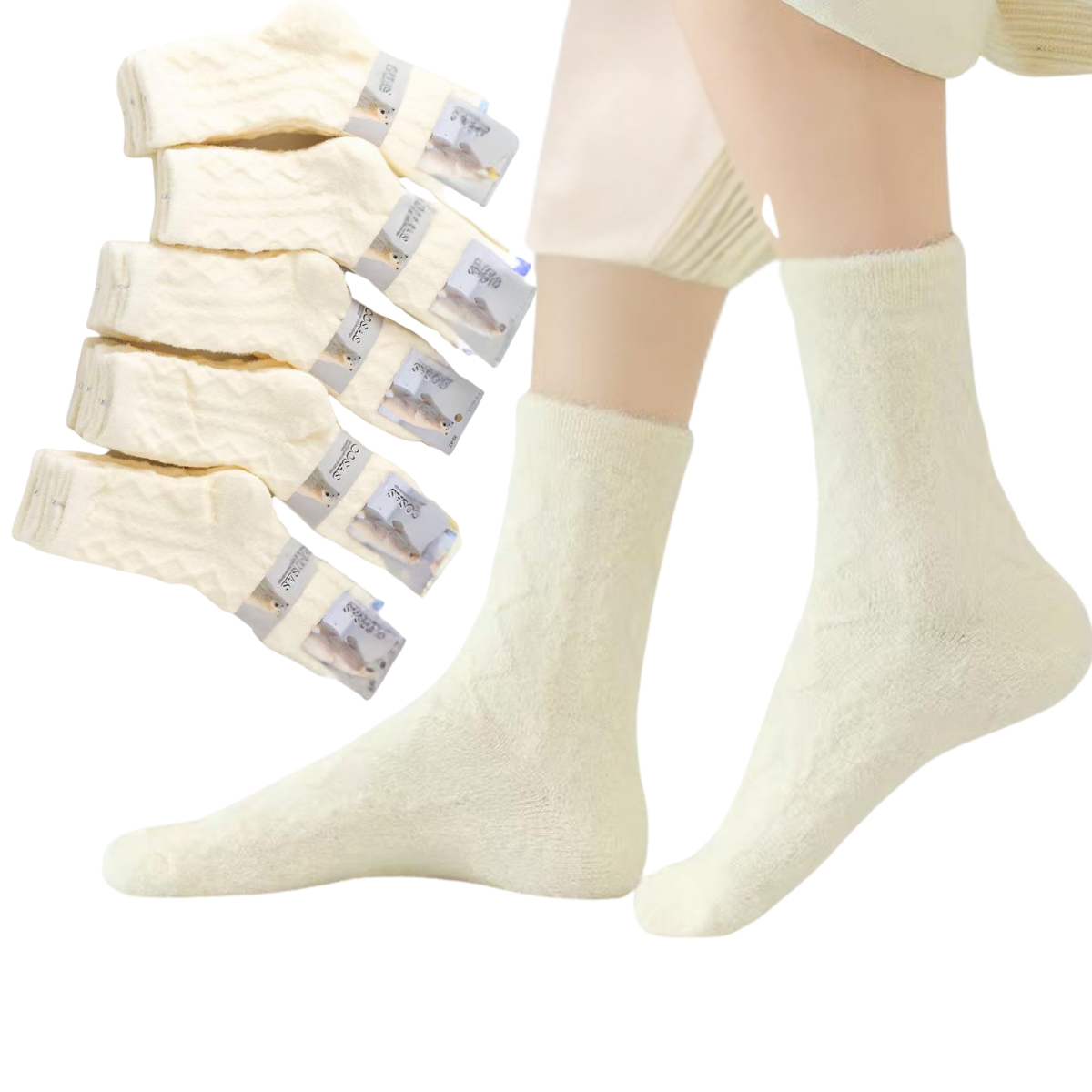 - Kremowe skarpetki angorowe.