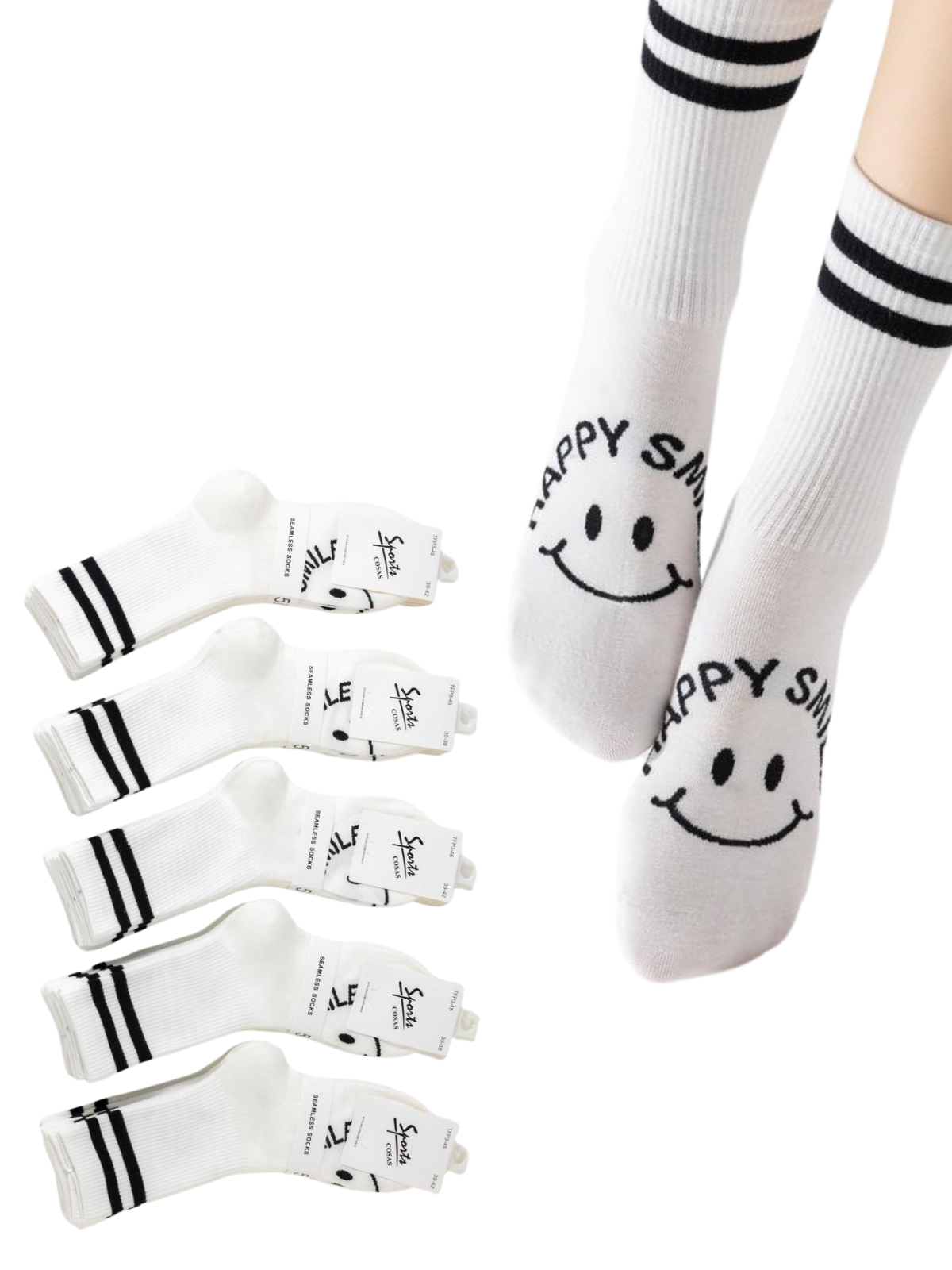 Każda z pięciu par wyróżnia się innym, modnym wzorem, dzięki czemu zestaw jest jednocześnie spójny i urozmaicony. Skarpetki doskonale pasują do obuwia sportowego, codziennego i domowego, dodając stylizacjom świeżości i lekkości.
