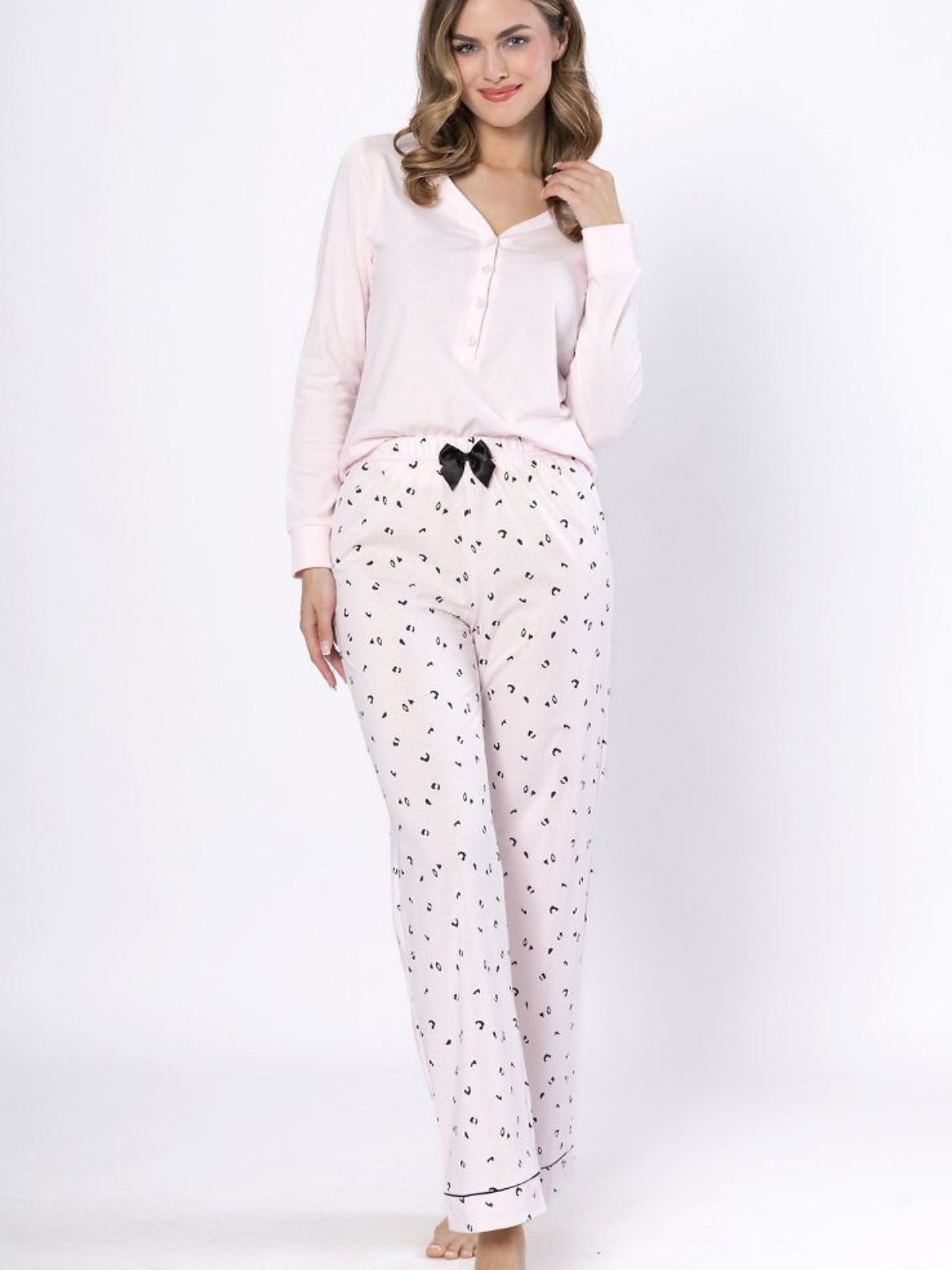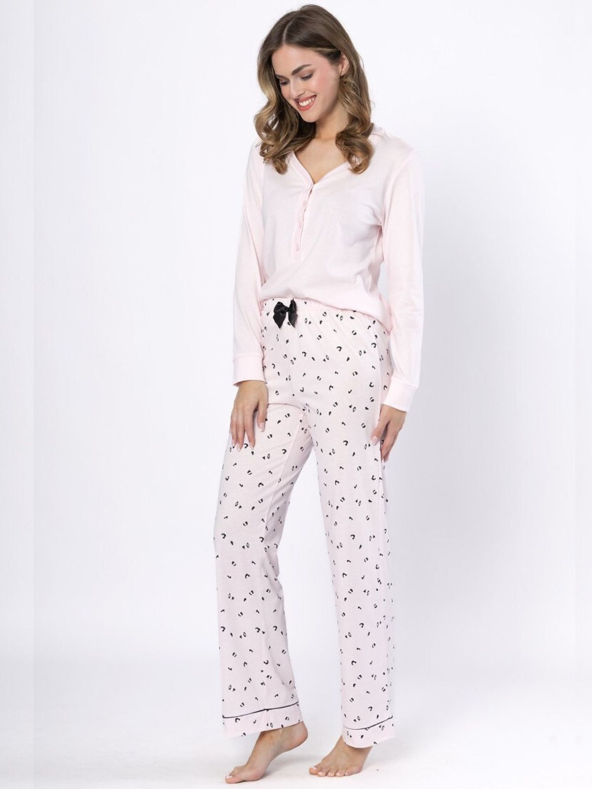 Bawełniana piżama damska z ozdobną kokardką Leveza AFRA 1617