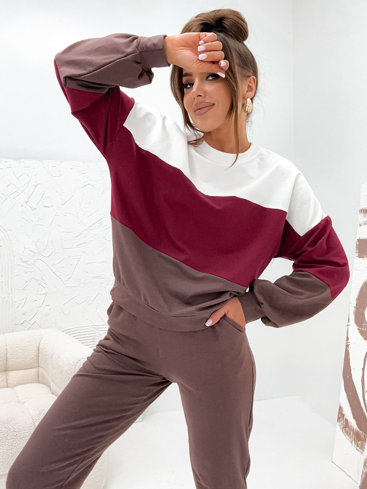 Damski dres bawełniany bluza wkładana przez głowę + spodnie 821113 bordo