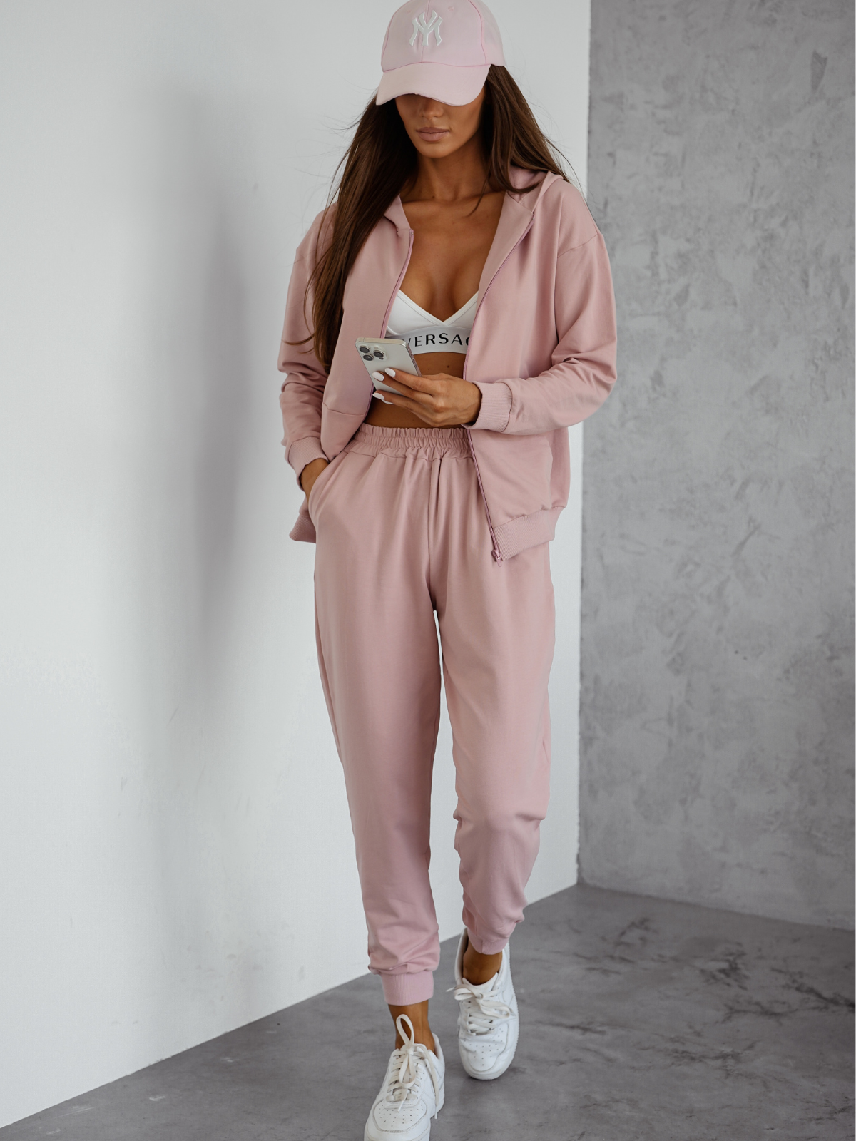 Subtelny pudrowy róż to hit sezonu. Nasz damski komplet dresowy w tym kolorze łączy wygodę z kobiecym wdziękiem — idealny na weekend i dziewczęce stylizacje.