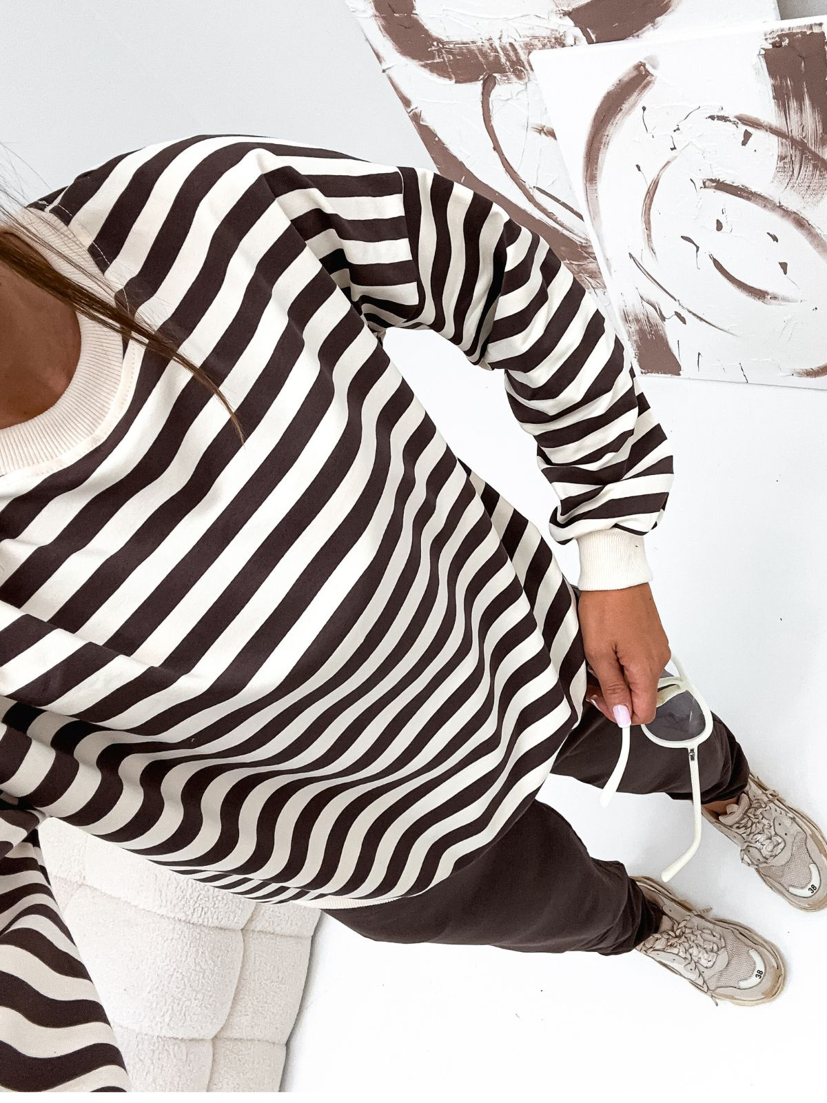 Dres damski bawełniany bluza w modne paski + gładkie spodnie 529
