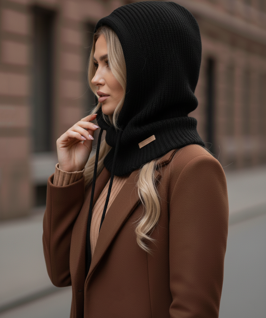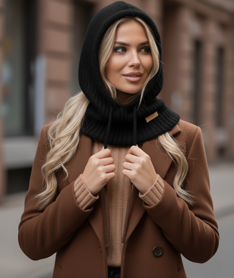 Odkryj Marlu kaptur-komin damski zimowy czarny – modny, praktyczny i uniwersalny dodatek, który łączy elegancję z funkcjonalnością. Klasyczny czarny kolor sprawia, że świetnie komponuje się z każdym płaszczem, kurtką czy innymi zimowymi akcesoriami. To uniwersalne nakrycie głowy, które skutecznie ochroni przed zimnem, zachowując przy tym komfort i miękkość podczas noszenia.