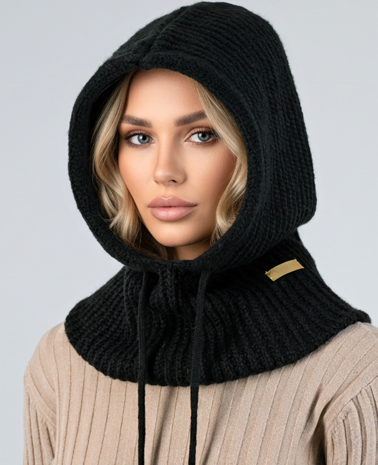 Czarny kaptur-komin Marlu to idealny wybór dla kobiet ceniących elegancję i funkcjonalność. Dzianina wysokiej jakości zapewnia ciepło, komfort i trwałość, a elastyczny materiał dopasowuje się do kształtu głowy i szyi.