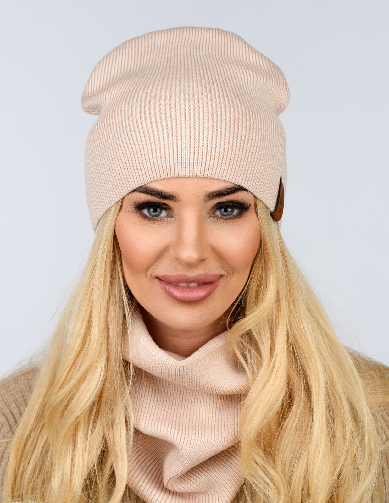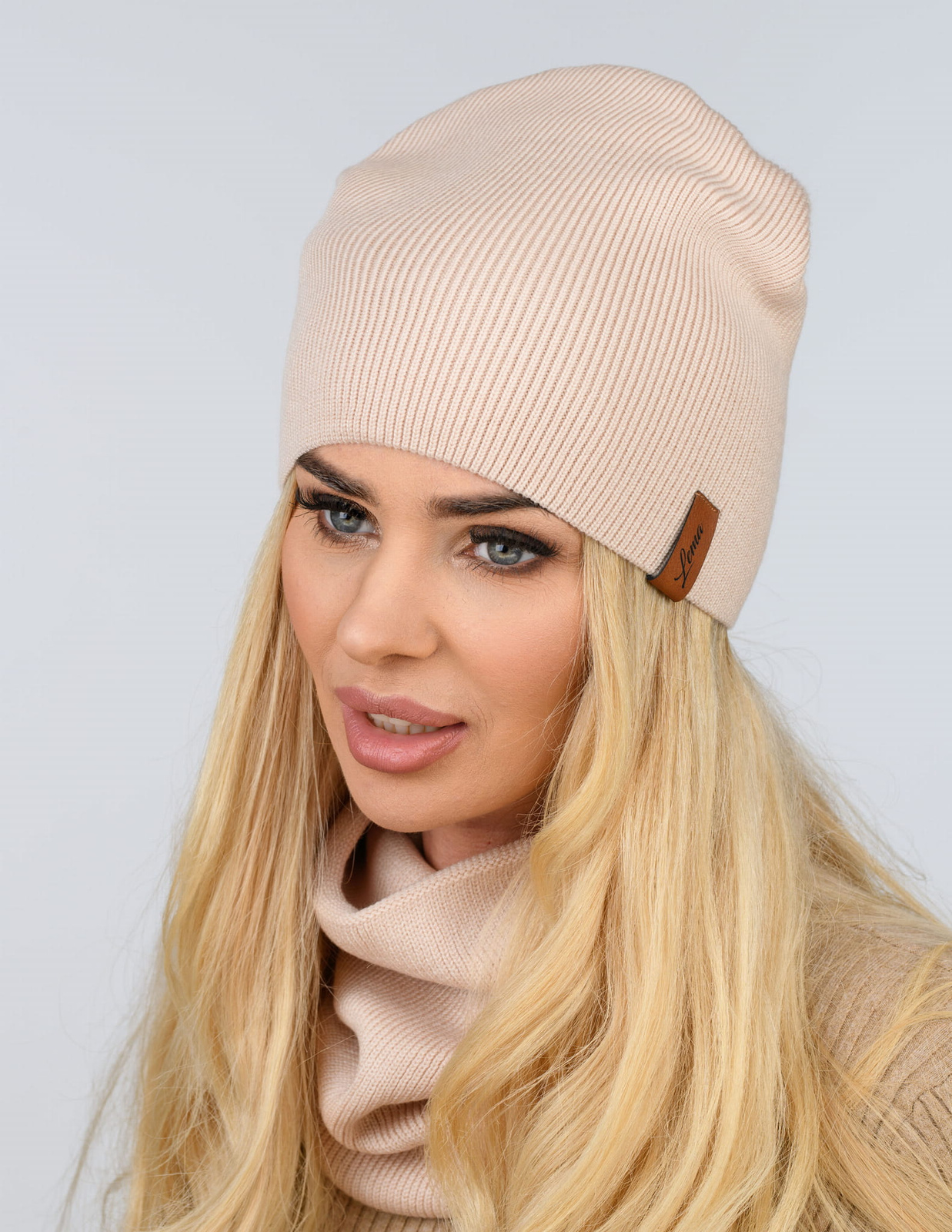 LEMA KOMPLET DAMSKI WISKOZOWY CZAPKA + KOMIN BEŻOWY – styl i ciepło w jednym