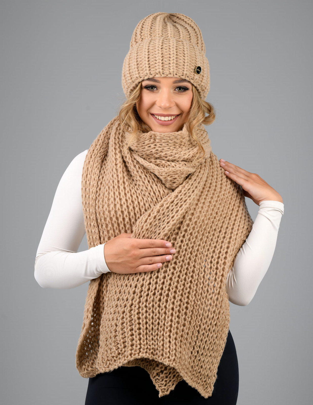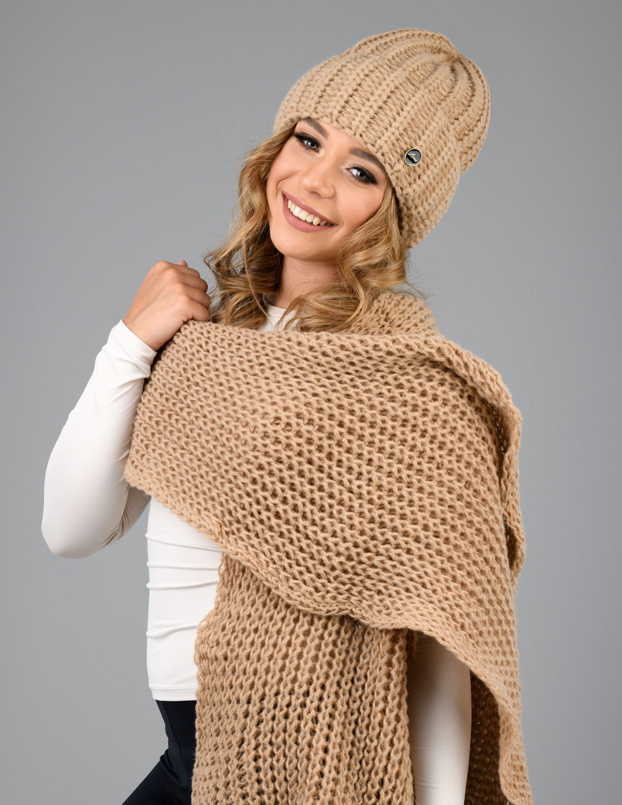Elegancki zimowy komplet damski LEMA Dalia – czapka beanie + szal