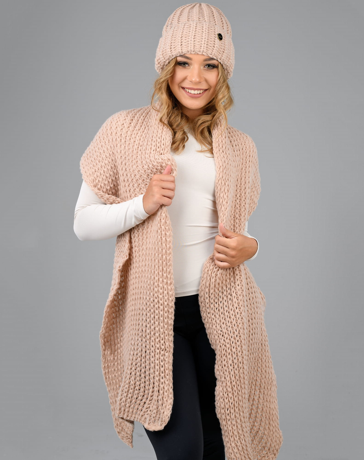 • Szalik: długość 200 cm, szerokość 30 cm – komfortowe owinięcie szyi