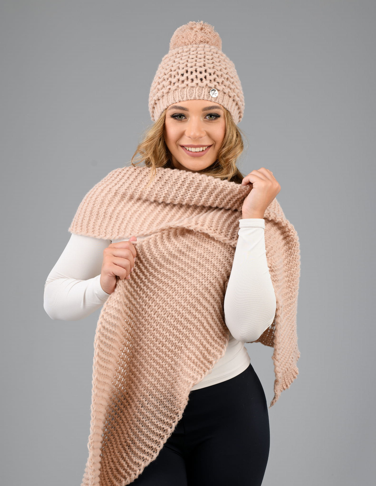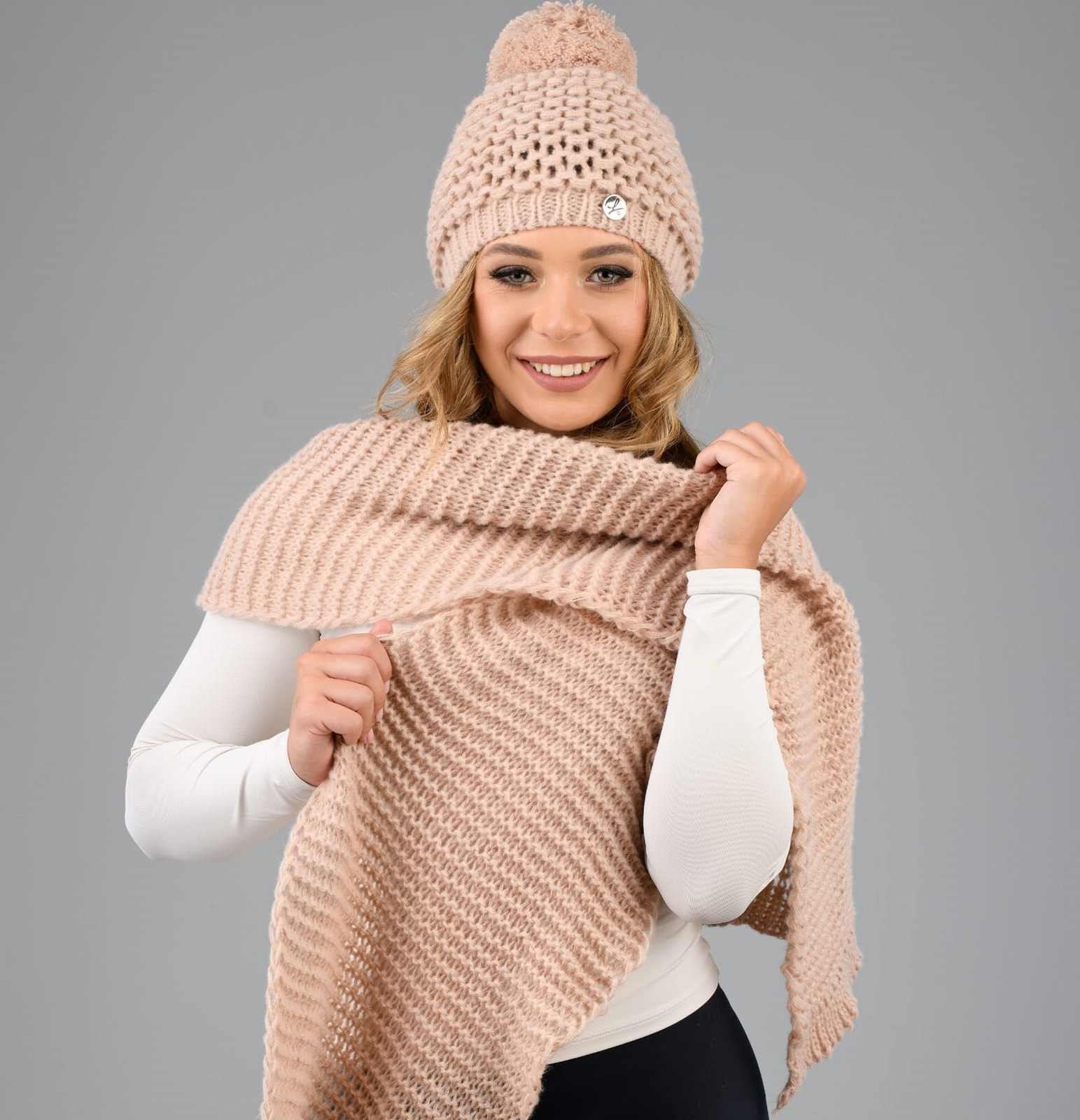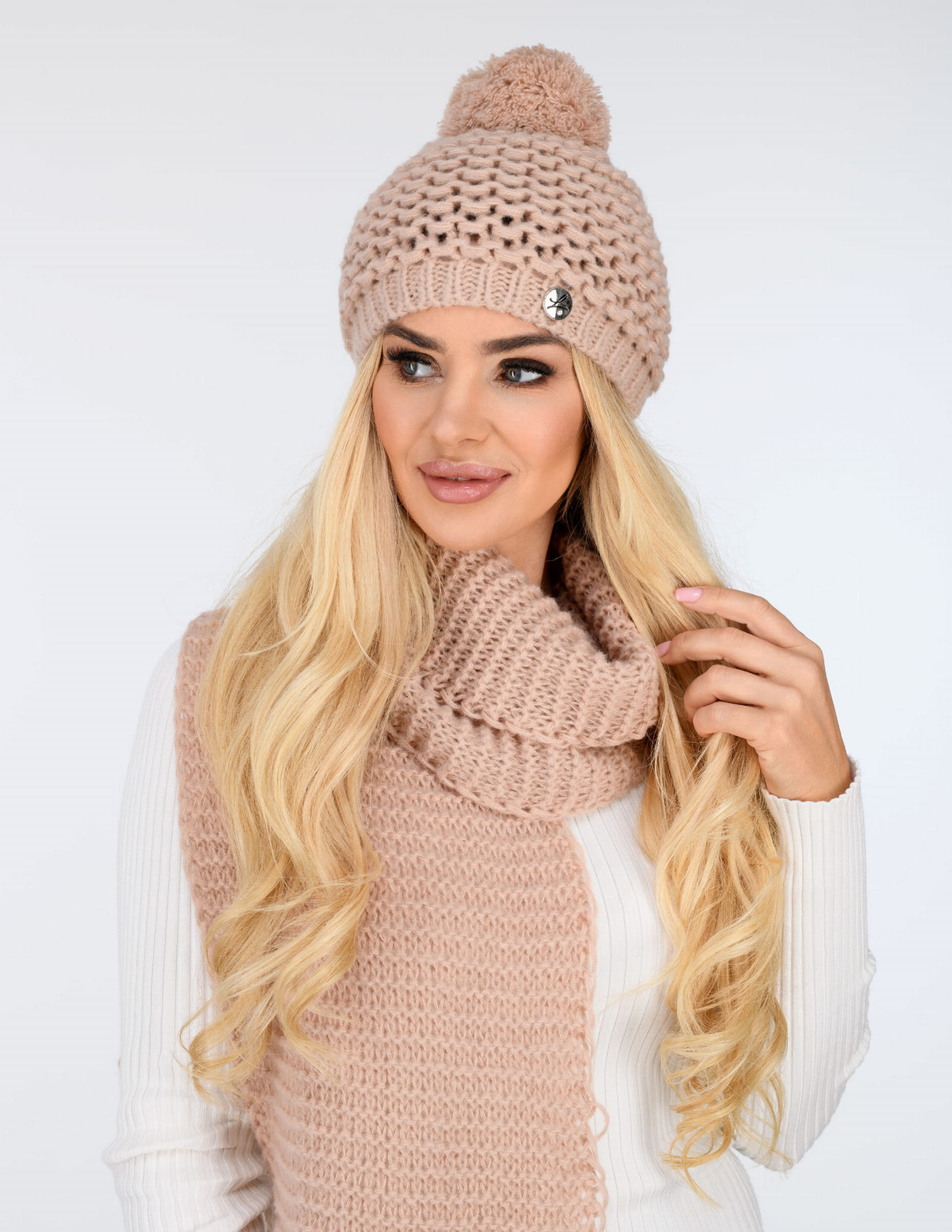 Zimowy komplet damski LEMA Vivi – czapka z pomponem + szal