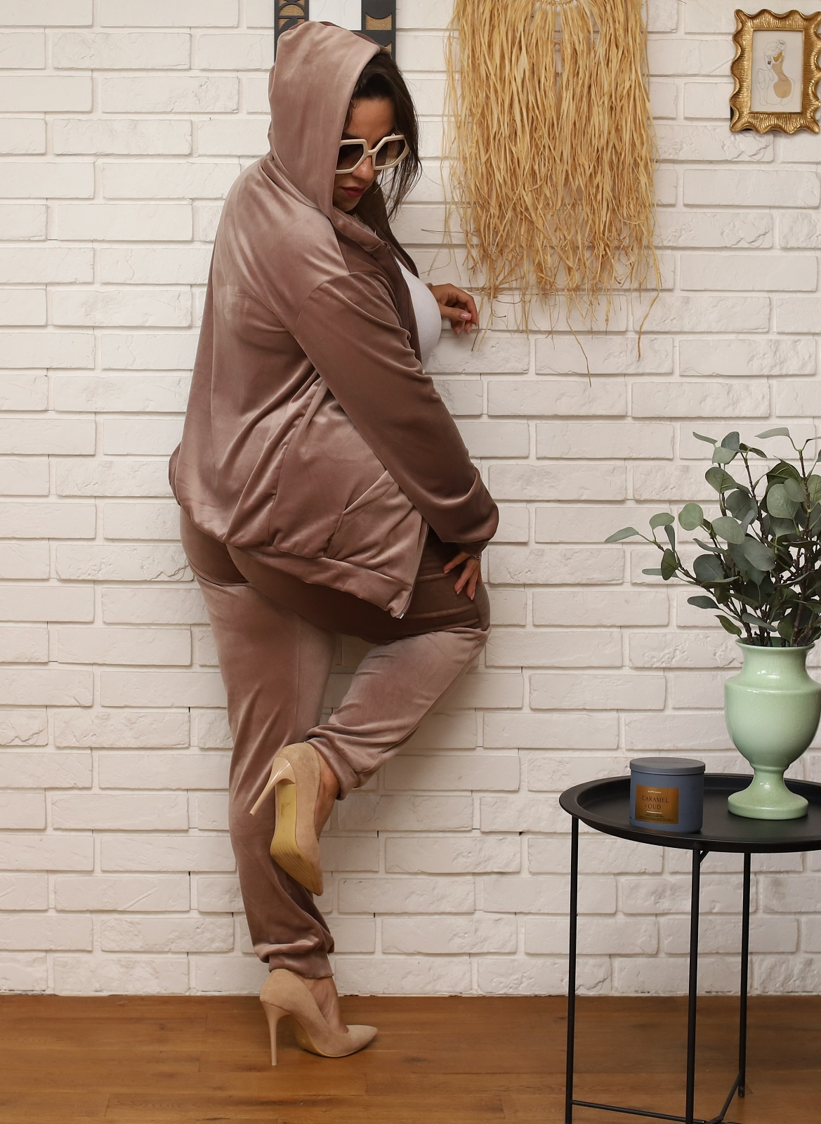 Damski dres welurowy z bluzą na zamek 8216 plus size