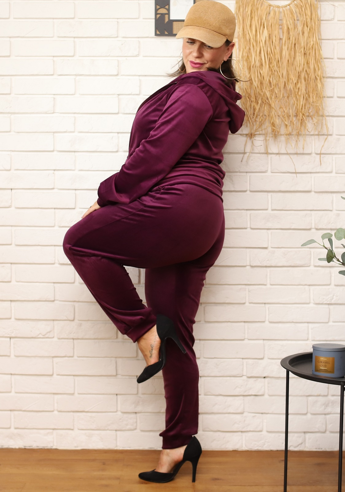 Damski dres welurowy z bluzą na zamek 8216 plus size